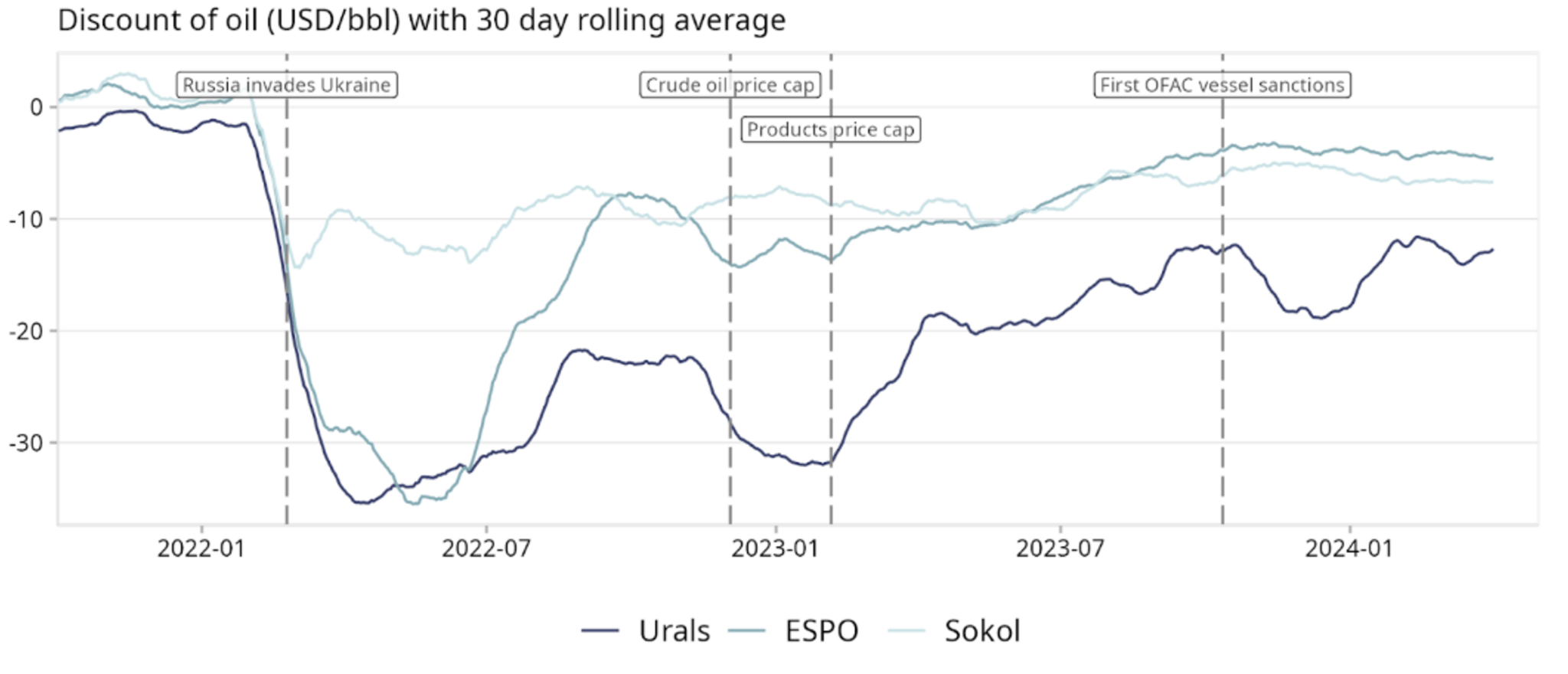 Discount of Russian Oil Prices to Brent Over Time